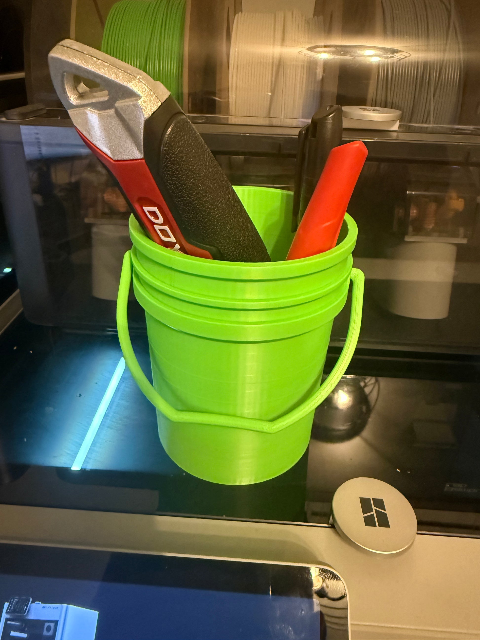 This 3D-printed Mini 5-Gallon Bucket is a scaled-down version of the classic shop bucket everyone knows. It’s perfect for holding small parts, hardware, screws, bolts, desk items, shop odds and ends, or just sitting around looking cool.